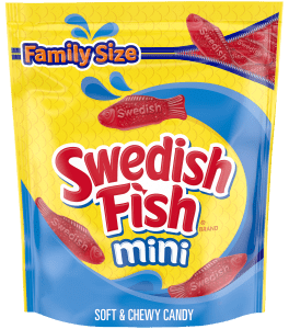 SWEDISH FISH Mini Soft & Chewy Candy offers a fun bite-sized sweet snack to share. The classic flavor of SWEDISH FISH gummy snacks floods your mouth with a delicious fruity taste. This smaller version of the signature red candy fish shape is easy to pop in your mouth, adding a bit of fun to your candy experience. This fruit flavored candy makes a great sweet treat for multiple occasions; keep SWEDISH FISH on-hand for quick snacks or as party favors for holidays or birthdays. This soft candy also makes a great movie theater candy to snack on during your favorite flick and a fun Halloween candy for trick-or-treaters. Each package of bagged candy is the perfect size for storing in your office desks, backpacks and purses for grab-and-go fruit candy. The bag of candy is resealable to keep these chewy snacks soft and fresh, even after opening.