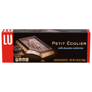 Lu Petit Ecolier European Milk Chocolate Biscuit Cookies feature glossy, European milk chocolate paired with a French butter biscuit. With a Le Petite Ecolier, or 'The Little Schoolboy', design dating back to the 1880s and updated in the 1980s, these European cookies have classic appeal. Ideal for life's special occasions, serve these rich, luxurious milk chocolate cookies at your next upscale dinner gathering, set them out as sweet snacks during a tea party, or simply enjoy this chocolate dessert with a cup of coffee or tea as a chocolate covered afternoon snack.