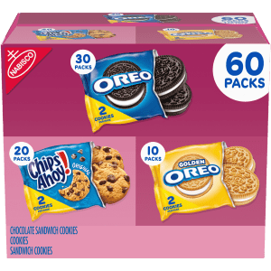 Nabisco Cookie Variety Pack OREO, OREO Golden & CHIPS AHOY!, 60 Snack Packs (2 Cookies Per Pack)