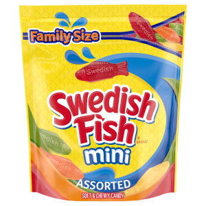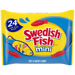 SWEDISH FISH Mini Soft & Chewy Candy offers a fun bite-sized sweet snack to share. The classic flavor of SWEDISH FISH gummy snacks floods your mouth with a delicious fruity taste. This smaller version of the signature red candy fish shape is easy to pop in your mouth, adding a bit of fun to your candy experience. This fruit flavored candy makes a great sweet treat for multiple occasions; keep SWEDISH FISH on-hand for quick snacks or as party favors for holidays or birthdays. This soft candy also makes a great movie theater candy to snack on during your favorite flick and a fun Halloween candy for trick-or-treaters. Each package of bagged candy is the perfect size for storing in your office desks, backpacks and purses for grab-and-go fruit candy. The bag of candy is resealable to keep these chewy snacks soft and fresh, even after opening.