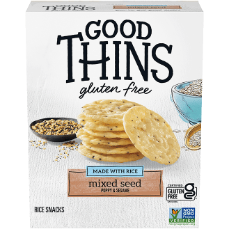 Enjoy a wholesome snack anytime, anywhere with GOOD THINS Simply Salt Corn & Rice Snacks Gluten Free Crackers. Crafted with corn and rice, these snack crackers are made with delicious goodness baked in every bite, and they're seasoned with sea salt for simply delicious savory snacks. These square rice and corn crackers are certified Gluten-Free by GFCO crackers are Non-GMO Project Verified and contain no artificial colors, artificial flavors or high fructose corn syrup making them delicious gluten free snacks for adults. Enjoy these light, crispy thin crackers by themselves, or pair these gourmet crackers with cheese and dip for easy party snacks. Each box of crackers includes sealed packaging to lock in all the delicious goodness and make excellent travel snacks and lunch snacks for adults and kids.