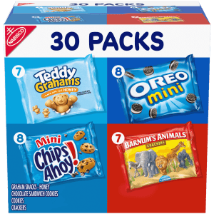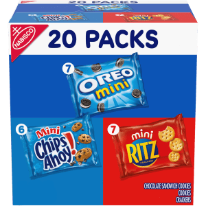 This Cookie Variety Pack includes OREO Original cookies, OREO Golden cookies and CHIPS AHOY! chocolate chip cookies in convenient snack packs for freshness and perfect portions. OREO cookies have the same original creme filling, and OREO Golden cookies offer a fun, vanilla take on the classic sandwich cookies. CHIPS AHOY! chocolate chip cookies are filled with crunchy goodness for a sweet treat. Tuck these snack packs into your lunch for a fun dessert, or reach for these snack size cookies when you’re ready to unwind from the day. They also make great holiday favors, school snacks, snack variety packs for adults and sweet snacks for the team after the big game. Each pack includes two cookies, just the right amount to satisfy your sweet tooth. This snack variety pack includes 30 individual snacks for easy storage and convenient transport.
